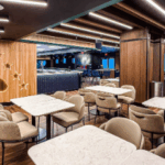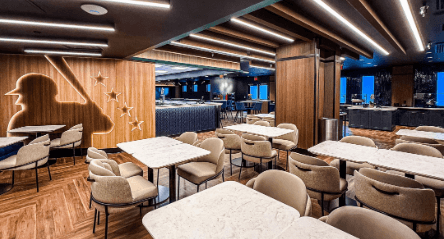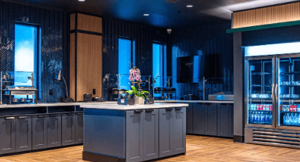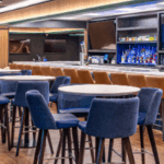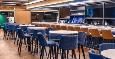 The PNC Home Plate Club offers a unique high-end experience at VyStar Ballpark. This indoor space behind home plate is complete with a full-service bar, high-top tables and chairs, couches, TV screens, a private sound system, and dedicated private restrooms.